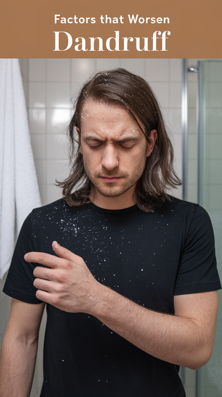 A poor diet lacking essential nutrients like zinc and omega-3s can worsen dandruff by increasing scalp oil production.