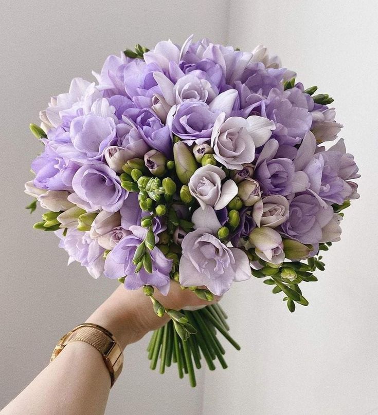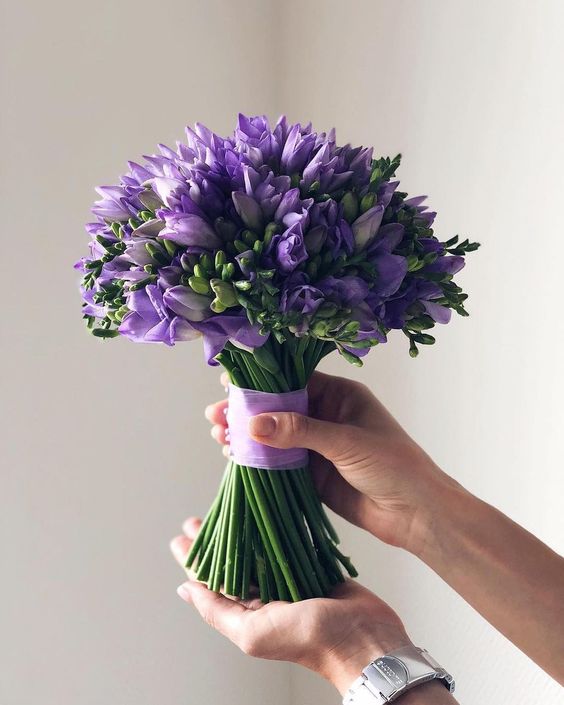 White and green simple arrangements are taking center stage in 2024, and this bouquet is a testament to the enduring beauty of simplicity. A graceful assembly of white elegant roses, lavender freesias, and delicate sprigs of greenery, this bouquet exudes a simple, yet profound elegance. It’s perfect for the bride who cherishes white elegant wedding flowers and wishes to infuse a touch of boho charm into her wedding ensemble.