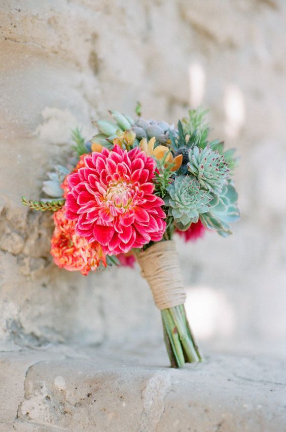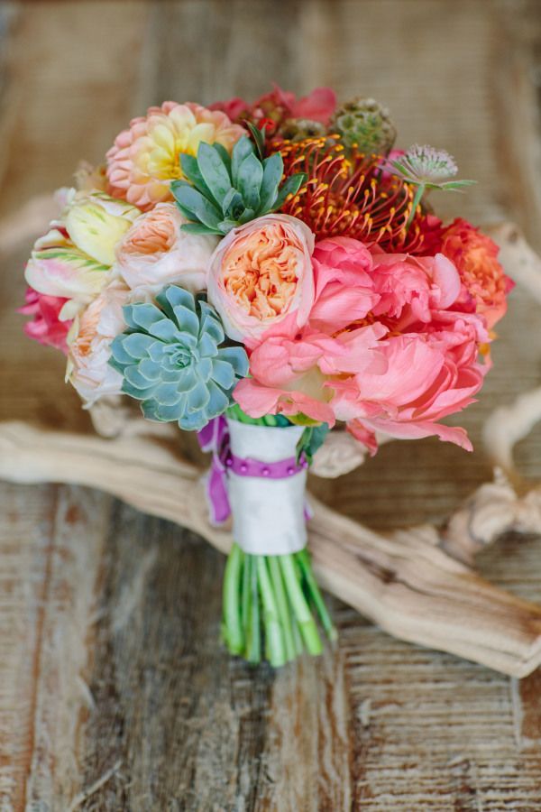 Here we encounter a daring blend of succulents and peonies, a bouquet that defies the traditional spring themes. Vibrant, colorful, and with a hint of the rustic, this arrangement would shine against the backdrop of a wedding dress or as a centerpiece that commands attention, embodying the modern spirit of 2024’s floral trends.