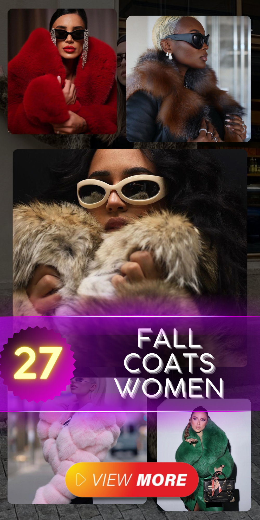 This luxurious fur coat paired with chic, bold sunglasses creates an opulent and sophisticated look, perfect for those who love to make a statement in their fall coats women wardrobe.