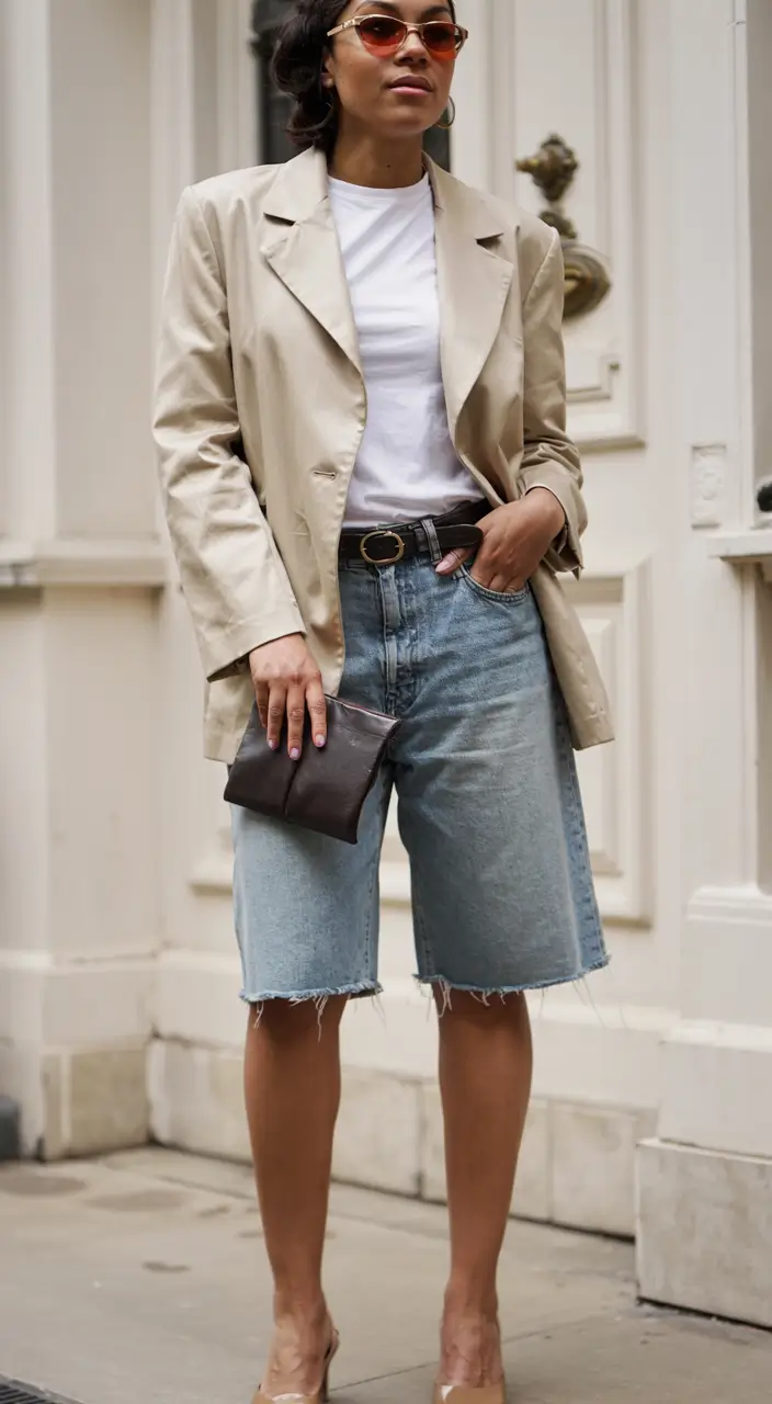 #5 Beige Blazer with Denim Bermuda Shorts