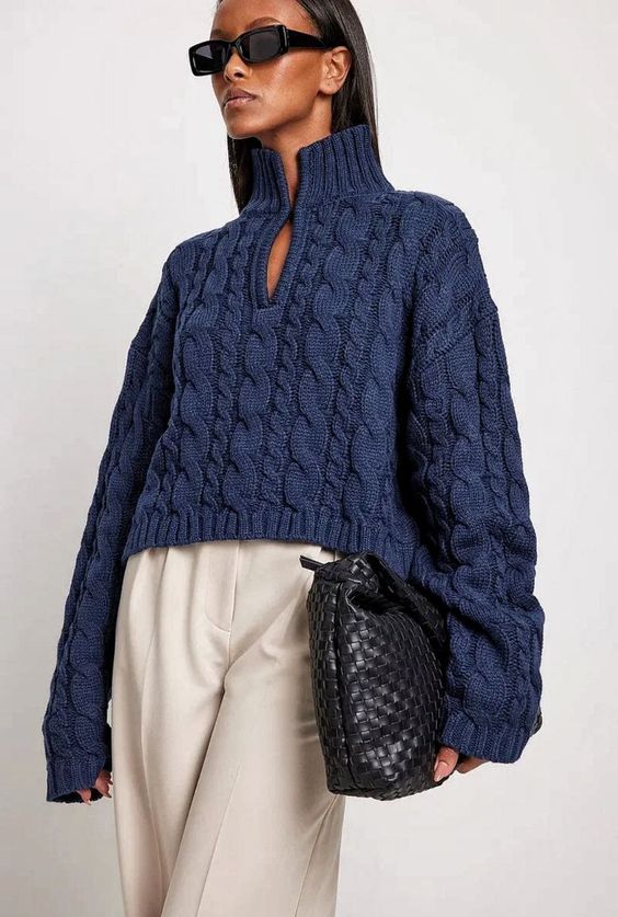 The herringbone pattern on this fitted turtleneck adds a graphic element to the spring capsule wardrobe. It’s classic yet trendy, offering visual interest without overwhelming the minimalist theme. The light grey tone is versatile, serving as a canvas for bold accessories or a size-conscious women’s layering piece. Suitable for a teacher or a businesswoman, this sweater is a testament to trends women love for its balance between basic and hot.