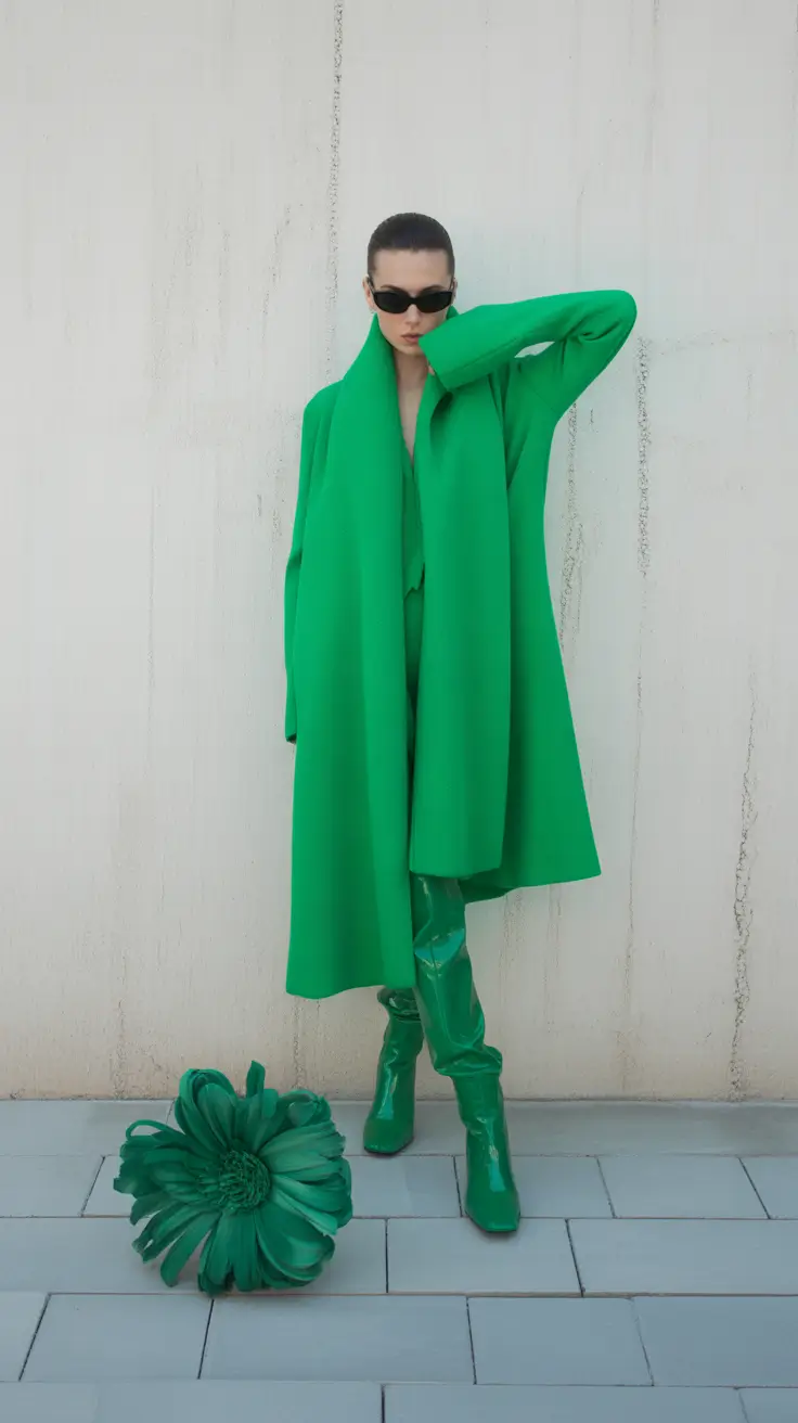 Here’s how you take monochrome and make it museum-worthy. The oversized coat shape, the head-to-toe green, the vinyl boots and even a sculptural clutch, this outfit is not to be worn by the timid. And that’s exactly why it works. It’s art. It’s power. It’s full-blown ideas dijbi couture in motion. Greetings to the 2025 street fashion, where black is now green.