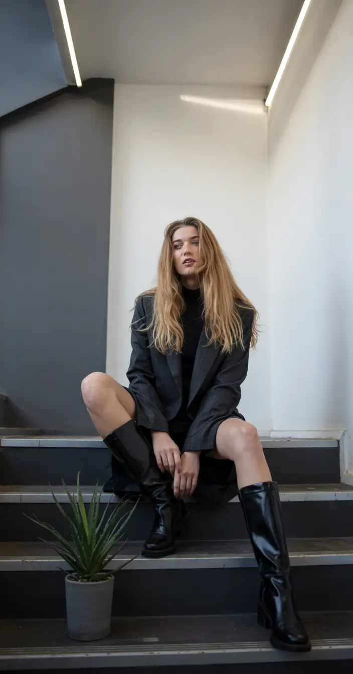 This ensemble exudes that rebellious, nonchalant cool that you just can never fake. Mini dress with oversized blazer, black leather boots that go up to the middle of the calves and bedhead hair all look like, I did not really put a lot of effort into this, but yet it still looks stunning. It is the type of fashion trend that makes streetwear into a complete aesthetic inspo, particularly among teens 2025 or girls in early 20s who want to tap into the modern grunge.