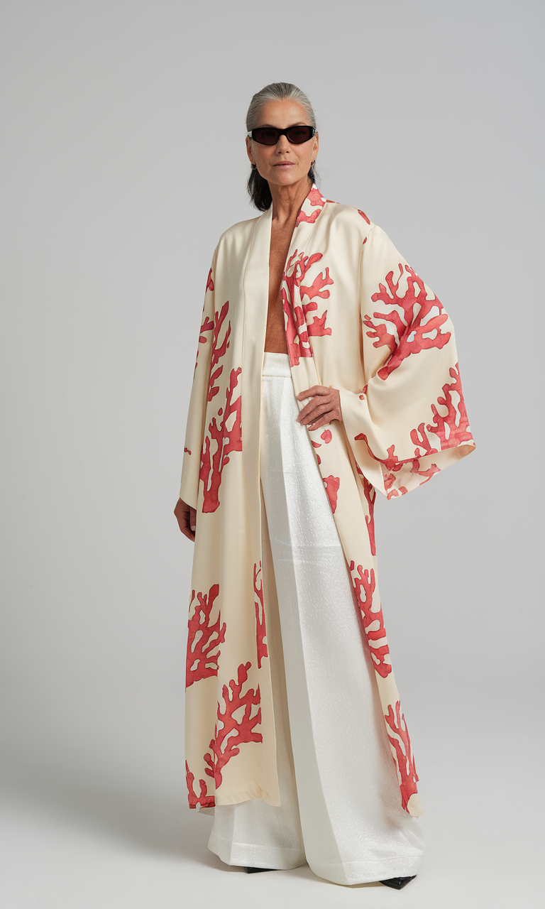 #15 Cream Coral Print Kimono with Wide Leg Pants