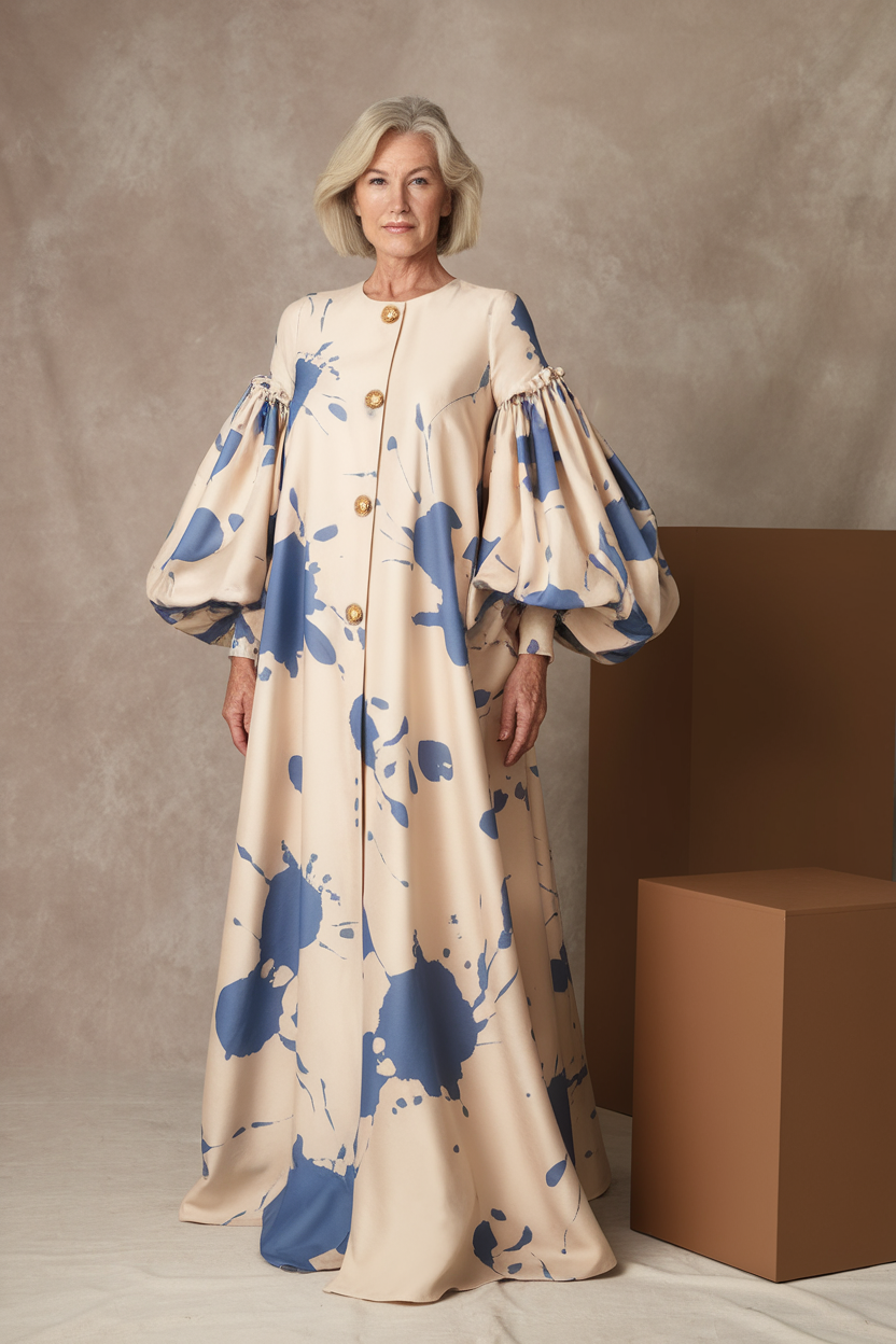 #9 Statement Sleeve Maxi Dress with Blue Accents