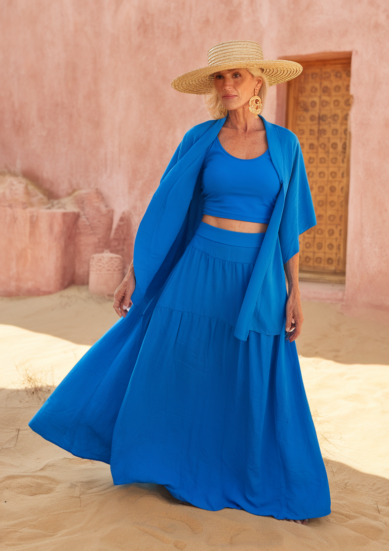 #1 Bright Blue Crop Top, Skirt and Cover-Up Set