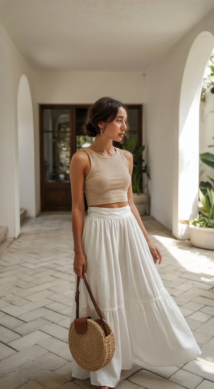 #9 Cropped Tank and Flowing Skirt in Neutral Tones