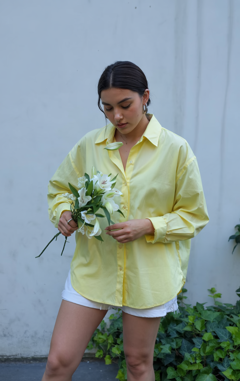 The oversized casual yellow shirt gives off a relaxed vibe that works just as well on Greek beaches as it does on the streets of Amsterdam in May. The ensemble is fresh and casual with the yellow shirt paired with white shorts. This comfortable outfit design because of its loose fit makes summer European travel effortless. The combination creates an ideal polymer match for women who want functional and bright May outfits for the year 2025.