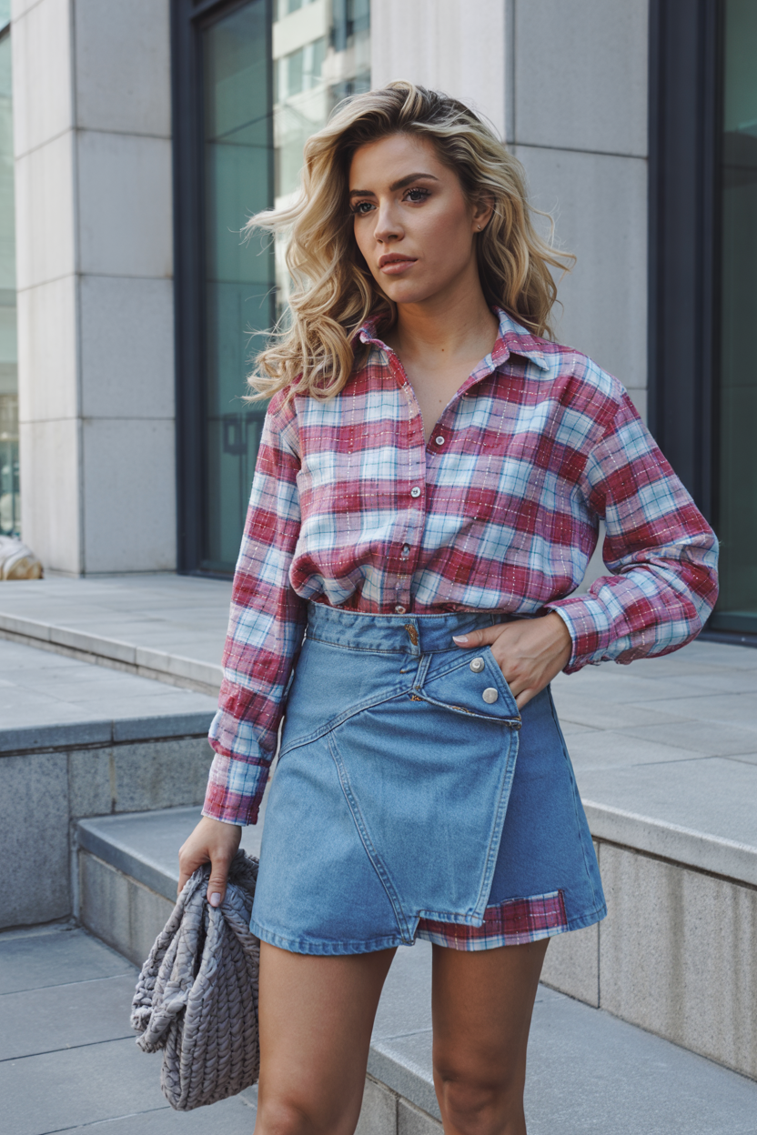 #5 Plaid Shirt with Asymmetrical Denim Mini Skirt