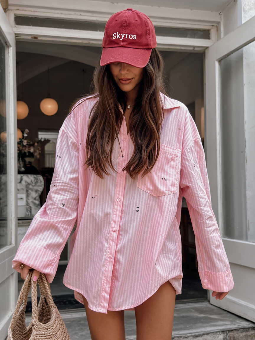 An oversized shirt in a light fabric in a relaxed pastel shade is the ideal look for the pleasant summer days of May. The relaxed style of this piece adds comfort and confident simplicity to any ensemble. The shirt can be paired with shorts or pants and skirts for a flexible summer casual outfit combination. A great option for women planning a stylish trip to Greece or Paris.