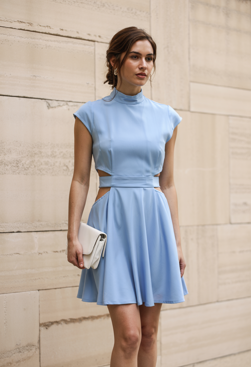 #26 Soft Blue Cut-Out Dress for Elegant Day Events