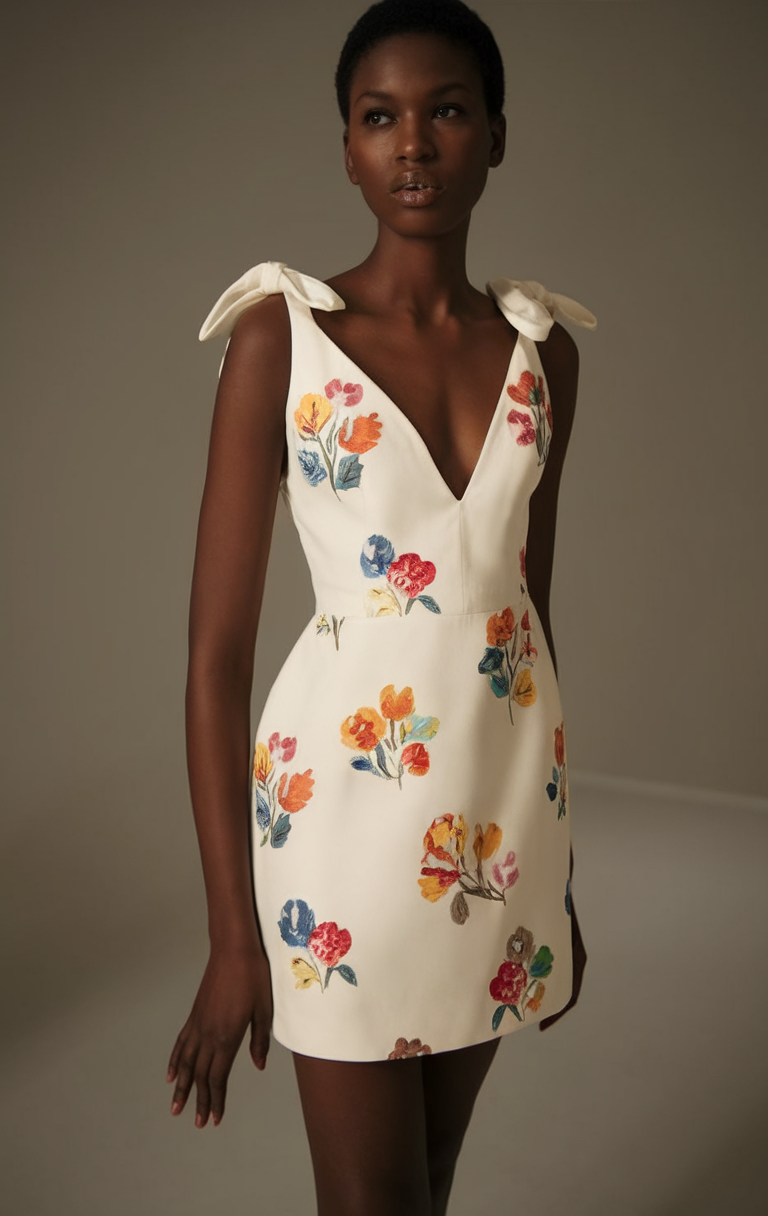 #3 Floral Embroidered Mini Dress With Bow Straps