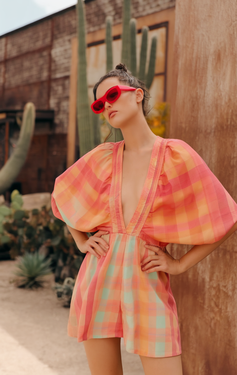#19 Plaid Colorful Romper with Statement Sleeves