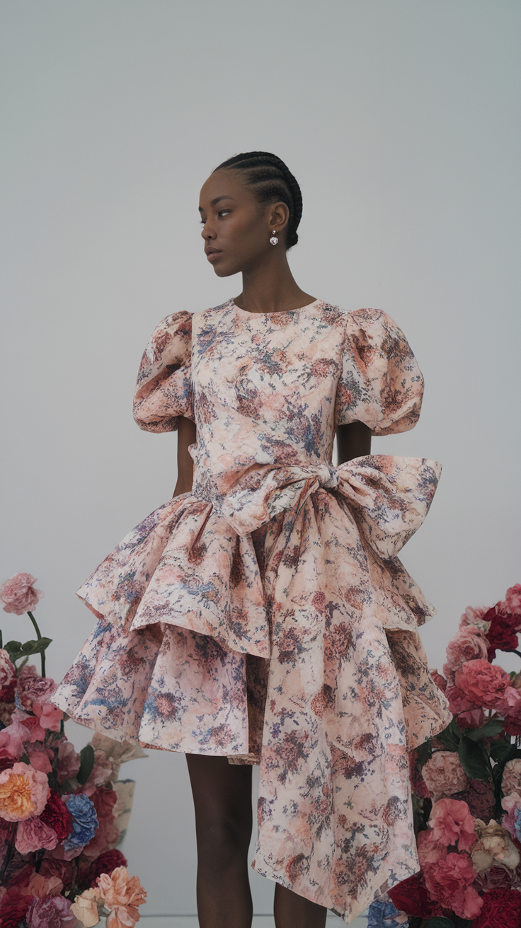 #3 Floral Puff-Sleeve Dress with Bow Accent