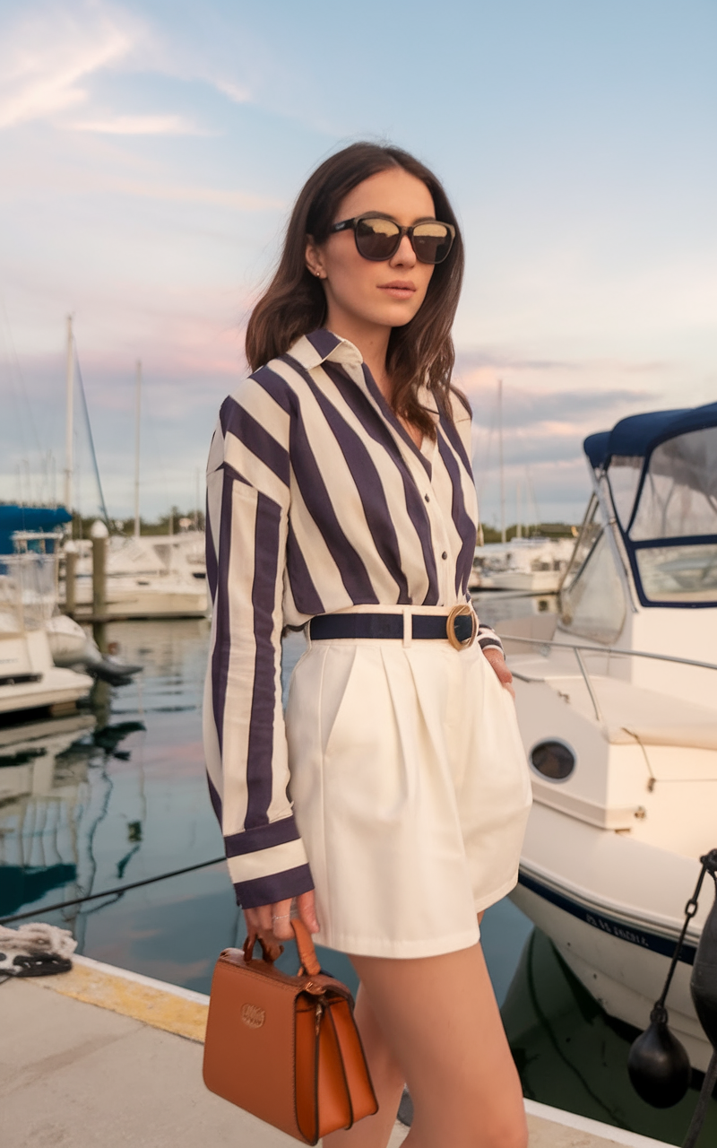 #19 Timeless Look with Polished Tailored Shorts and Stripes on a Shirt