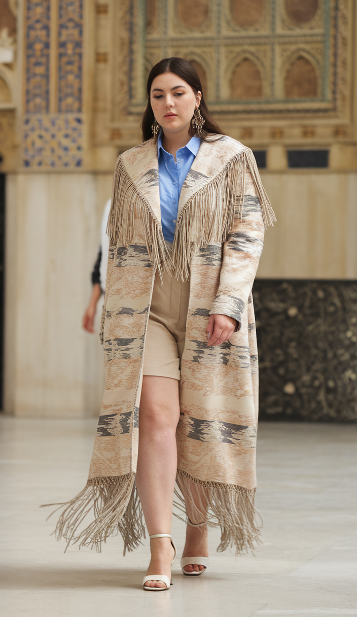 #16 Statement Fringe Coat Complements a Polished Casual Attire