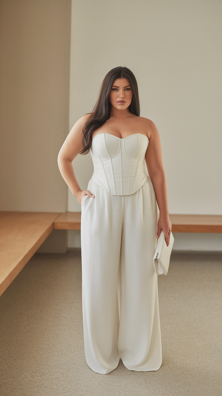 #15 Minimalist All White Corset and Wide Legged Trousers