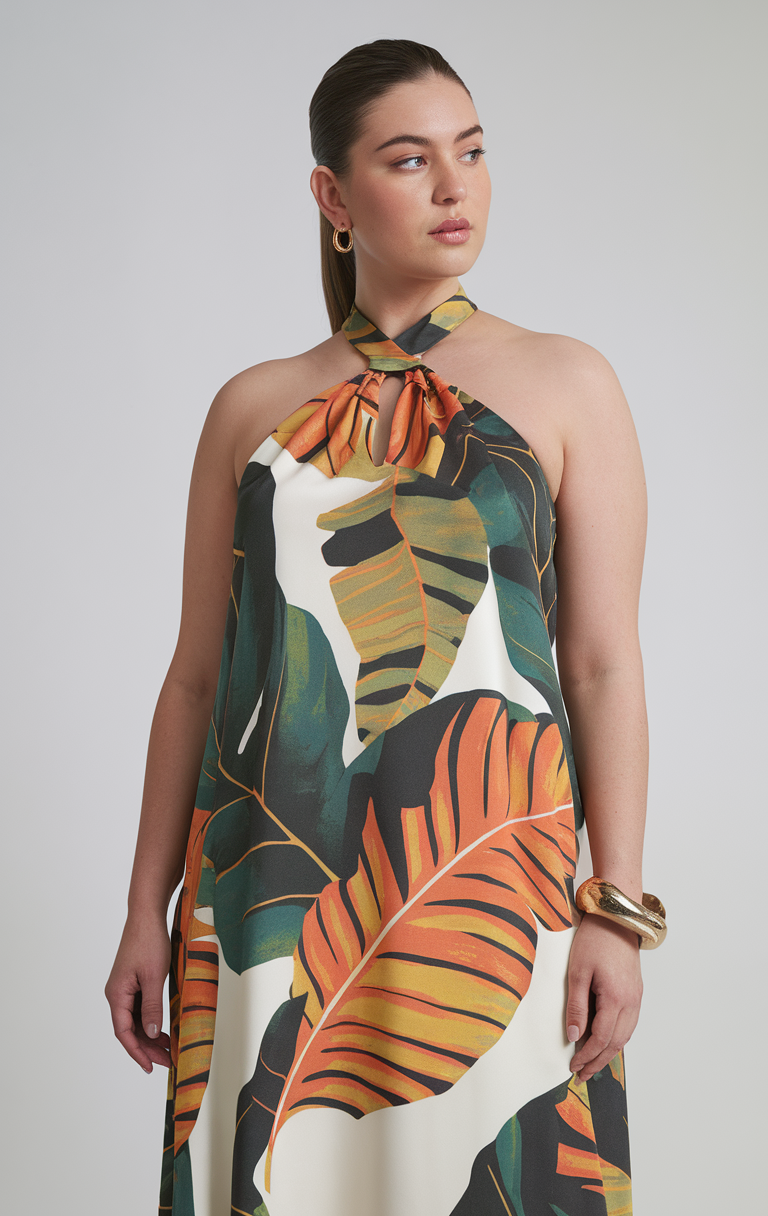 #11 Tropical Halter Maxi Dress for a Bold Statement