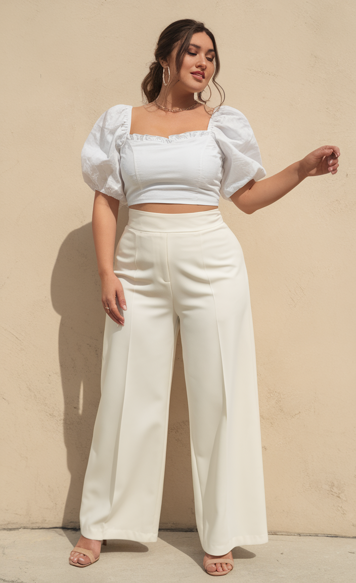 #10 Sophisticated White Puff Sleeve Top with Tailored Pants