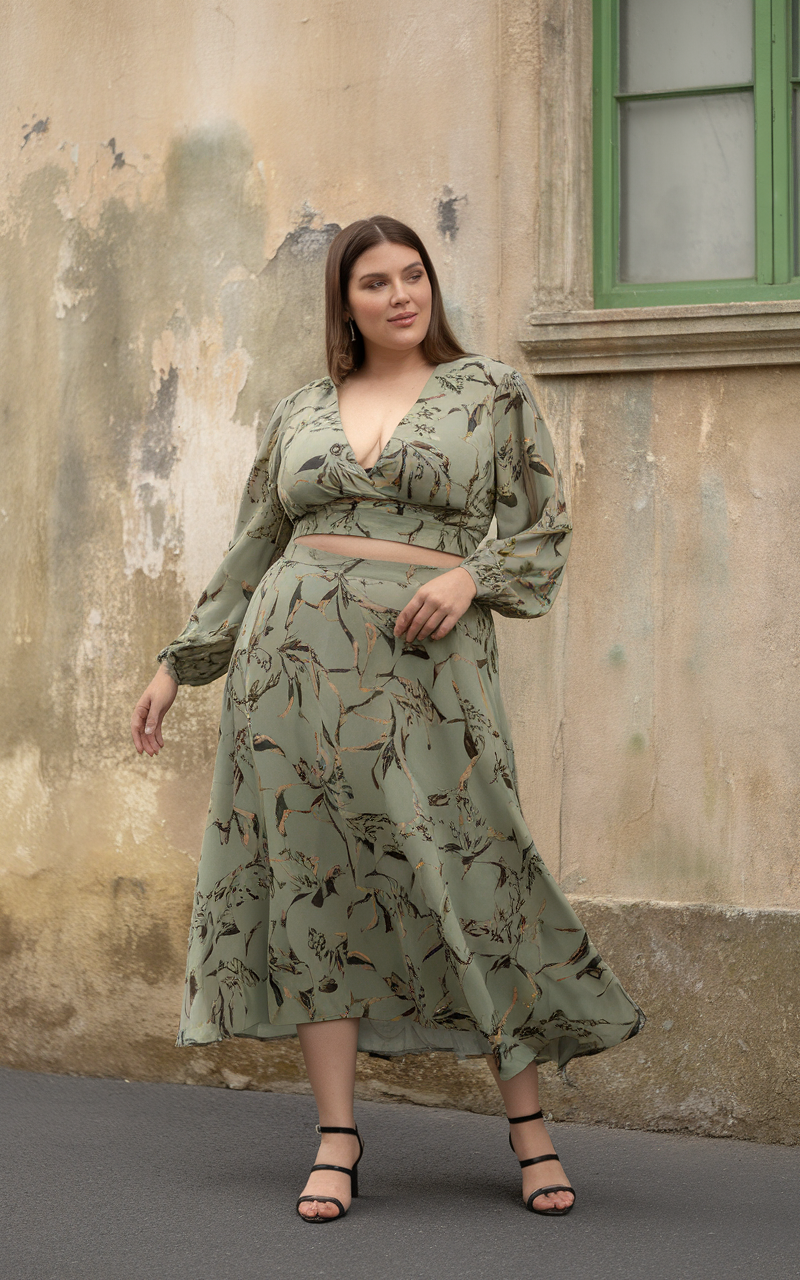 #9 Earthy Green Floral Two-Piece Set for a Bohemian Touch