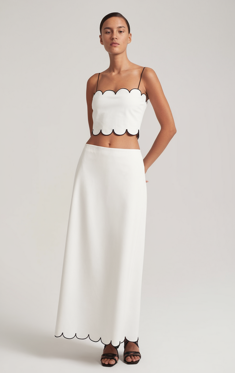 #16 White Scalloped Two-Piece With Maxi Skirt