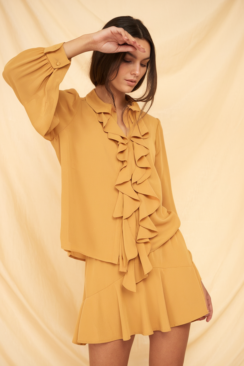 #8 Mustard Ruffle Blouse with Matching Skirt
