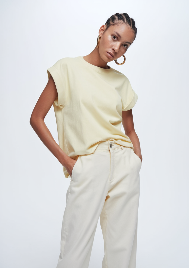 #19 Light Yellow Sleevless Top with Cream Wide-Legged Trousers