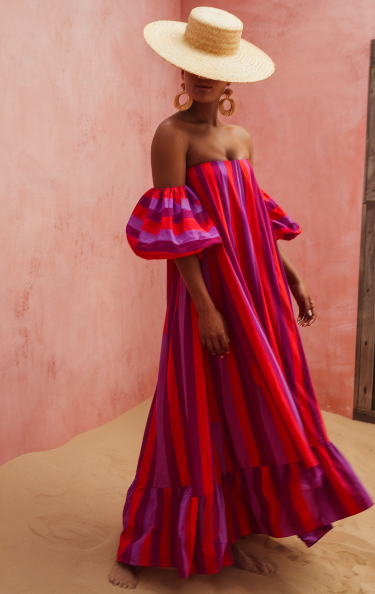 #2 Striped Off-Shoulder Maxi Dress