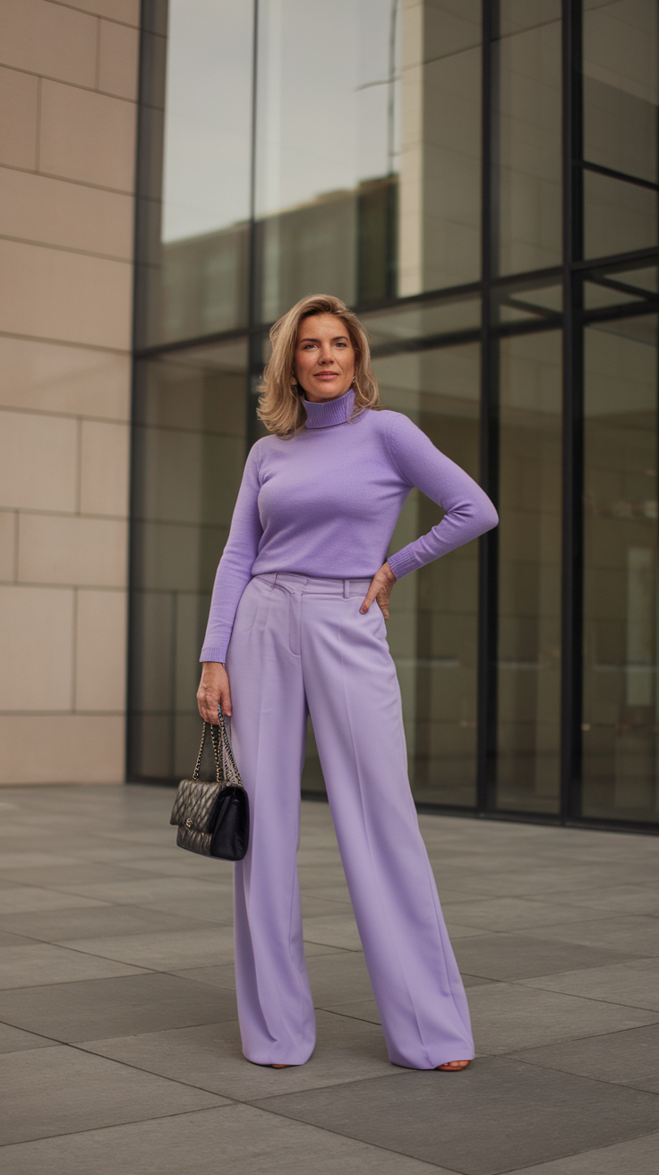#23 Lavender Turtleneck with Wide-Leg Trousers