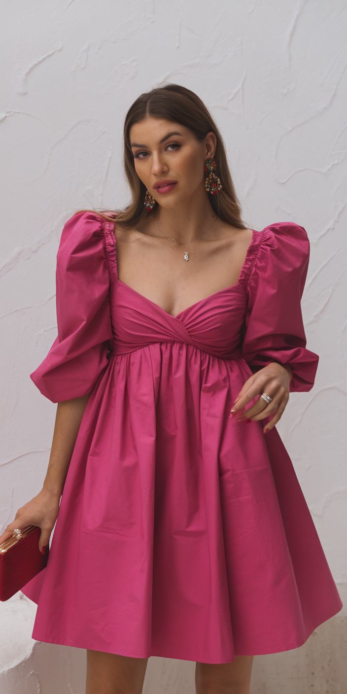 #24 Fuchsia Puff Sleeve Babydoll Dress
