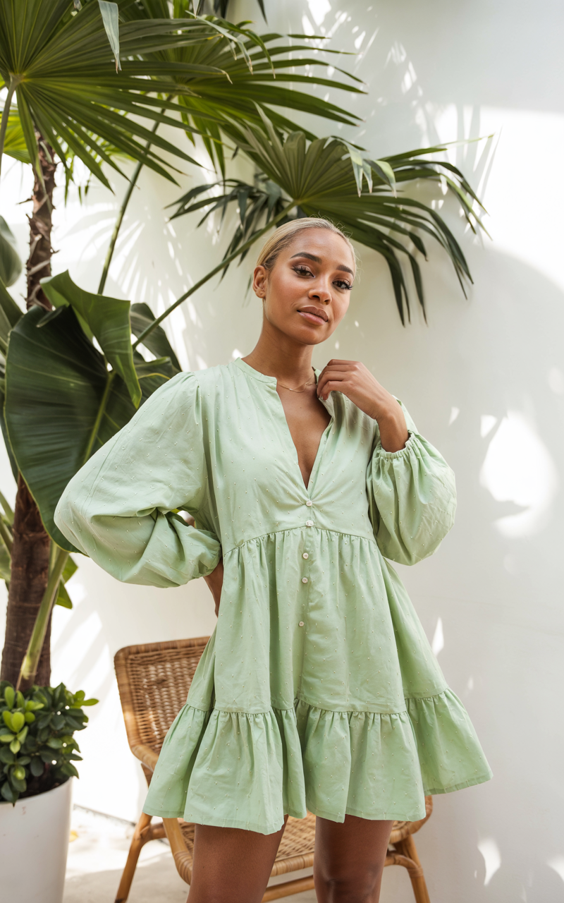 #8 Light Green Button Front Babydoll Dress