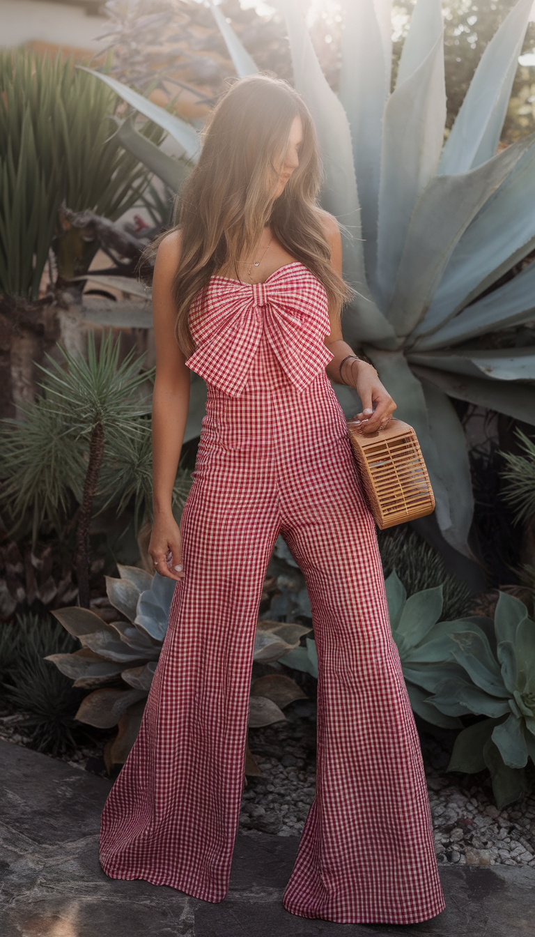 #10 Red Gingham Jumpsuit with Oversized Bow Detail