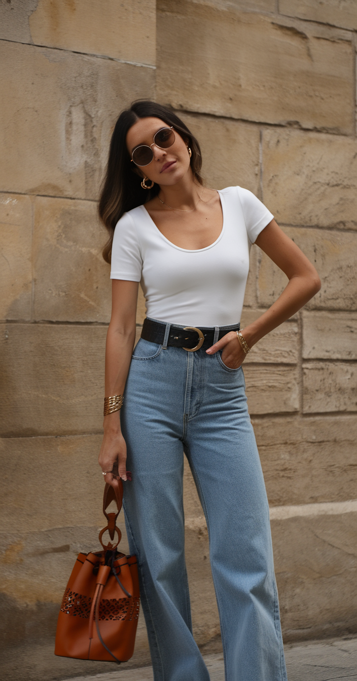 #3 Fitted White Tee and High-waisted Jeans for Everyday Style