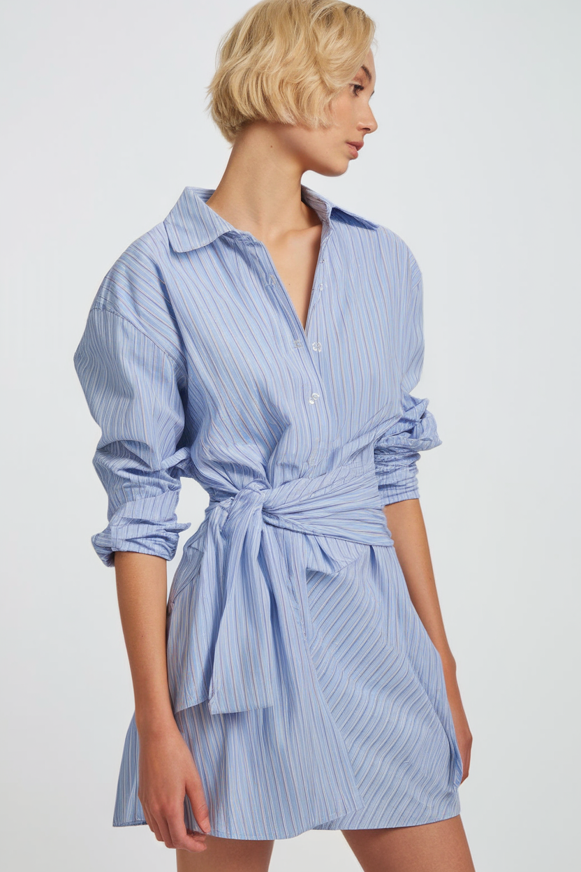 #11 Striped Blue Shirt Dress with Waist Wrap Detail