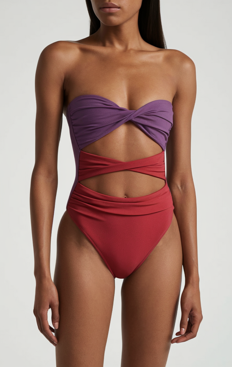 #6 Two-Tone Strapless Cut-Out One-Piece