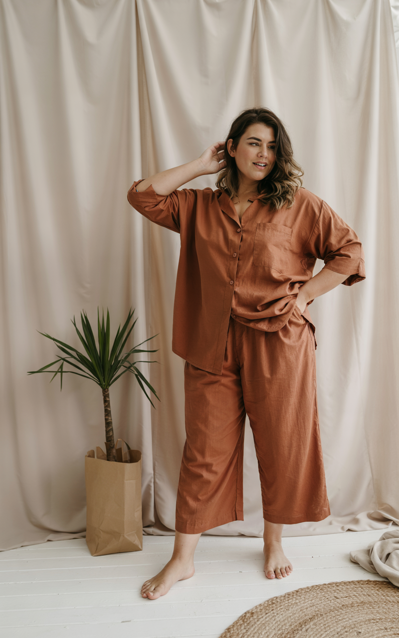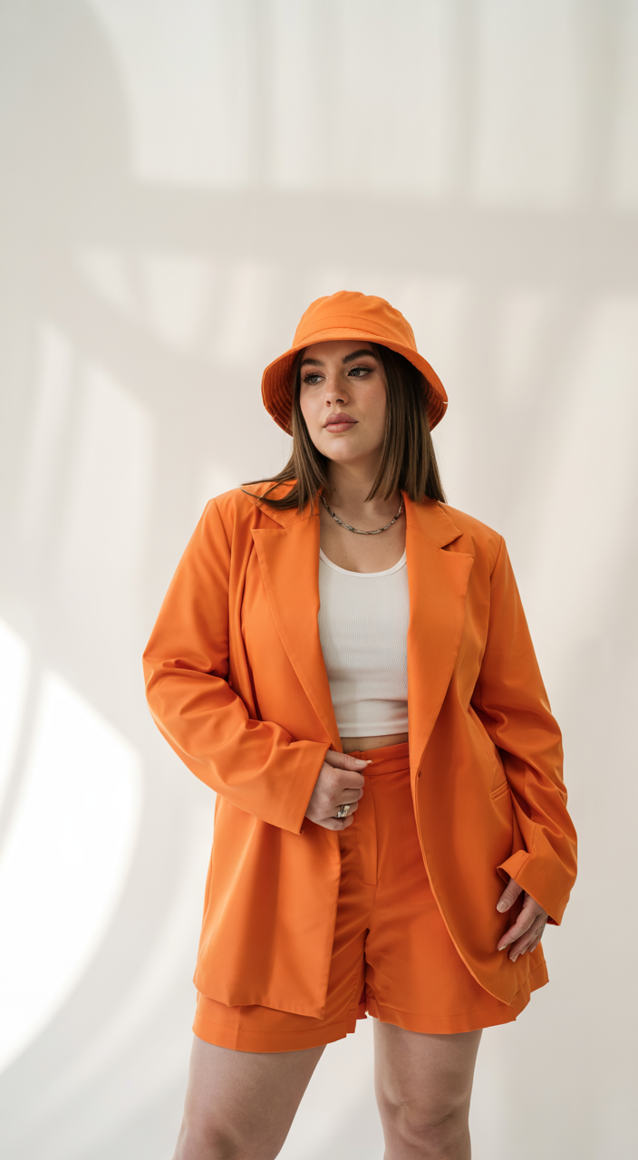 This ultra-lightweight, rust-colored suit comes in oversized dimensions to create a comfortable European-style look. It can be worn loosely or belted for ease and structure. This shade is an excellent choice for the late summer period. People can use this outfit for both formal workplaces and casual settings that require elegance.