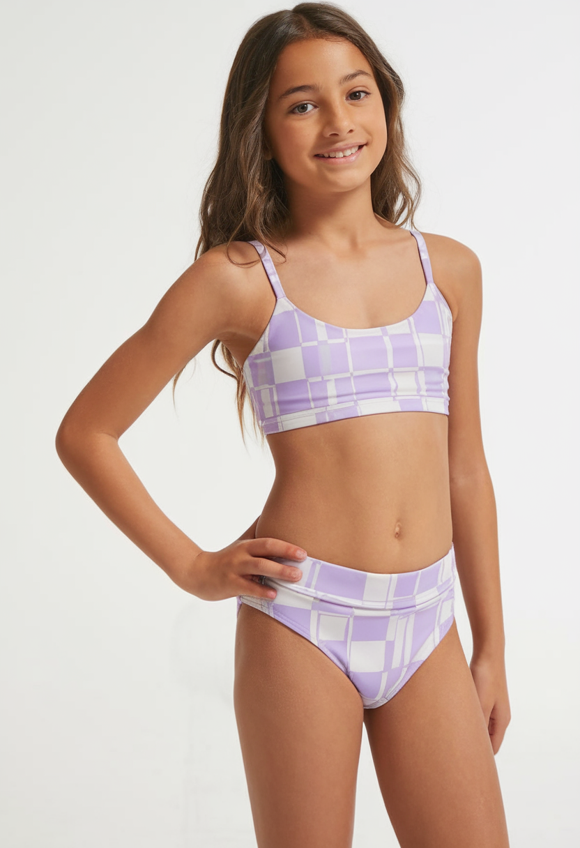 #24 Sleek Lilac Bikini Set with Plaid Detail