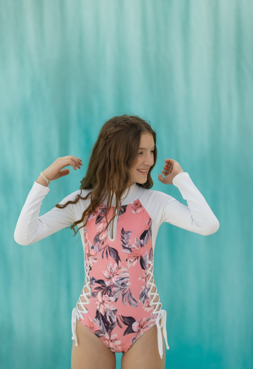 #5 Floral One-Piece with Long Sleeves and Lace-Up Sides