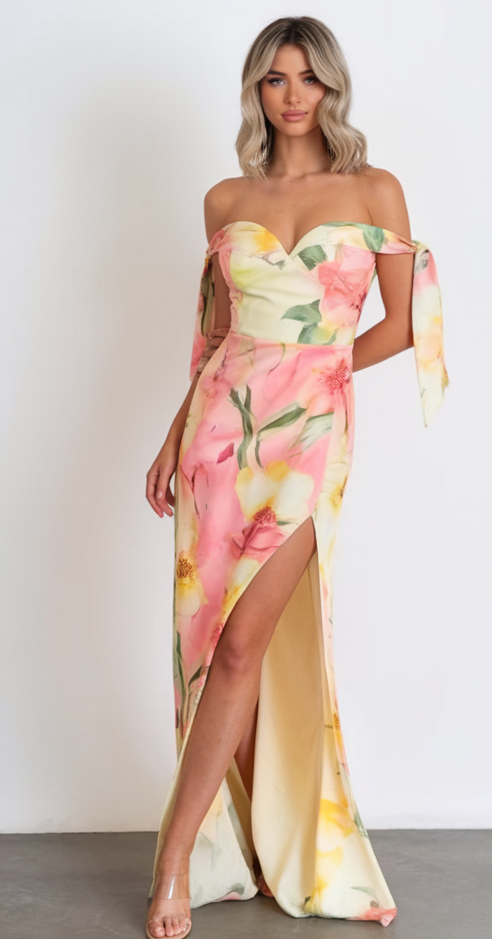 #21 Off Shoulder Watercolor Gown with Slit