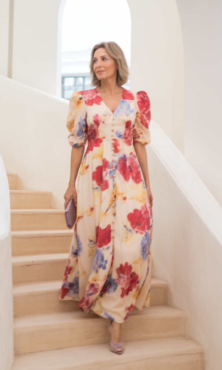 #25 Romantic Puff-Sleeve Floral Dress for a Timeless Appeal