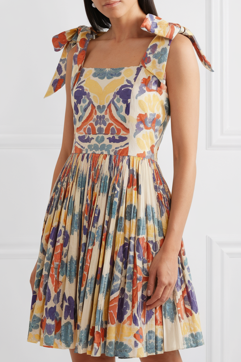 #24 Playful Bow-Tie Strap Dress with a Vibrant Print