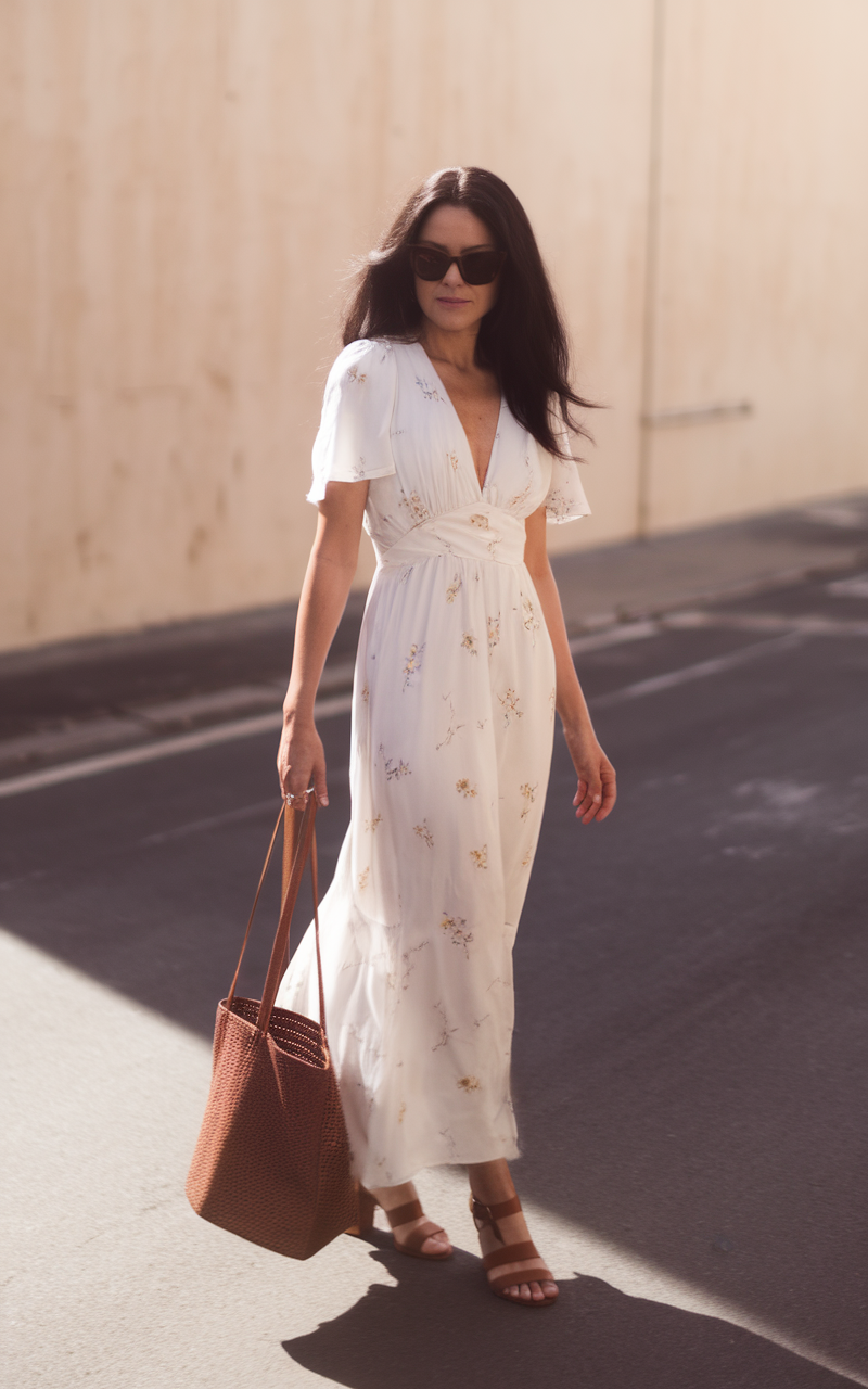 #23 Flowy White Maxi Dress with a Delicate Floral Print