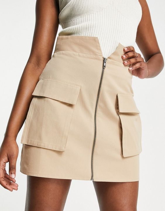 The cargo skirt is making a statement as a functional and fashionable piece. The large pockets and solid color offer a utilitarian vibe that’s also very on-trend. When paired with a simple top, it’s an outfit that speaks to the casual and adventurous spirit of summer.