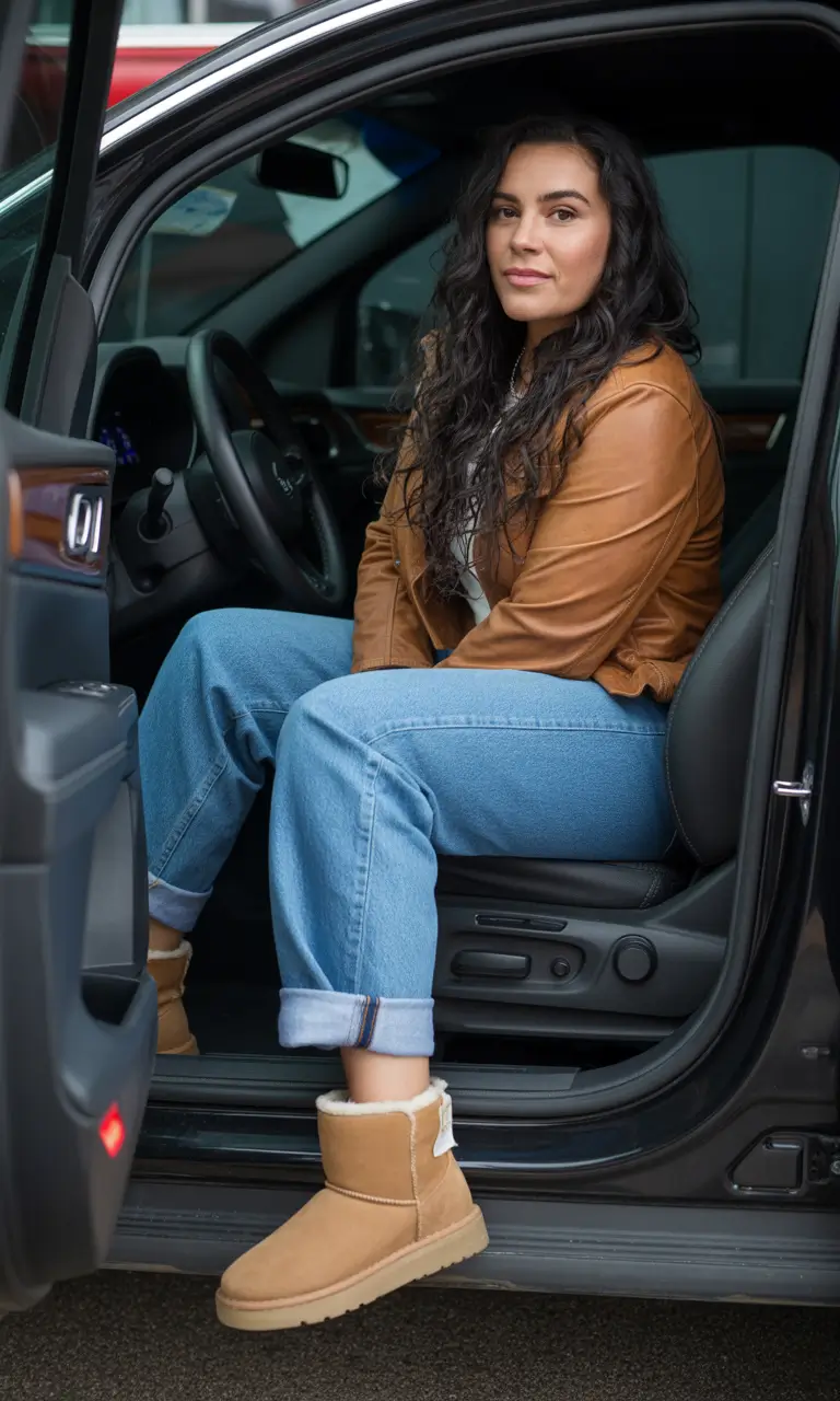 This is a uggs outfit 2025-2026 that works on real women, for real life. Along with the boots stay matching, the jacket does as well, and the style is balanced with rolled jeans. The boots are comfy, effortless and stylish.