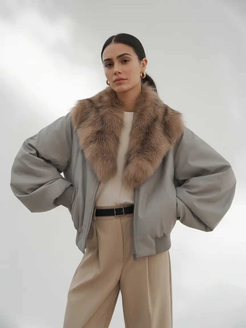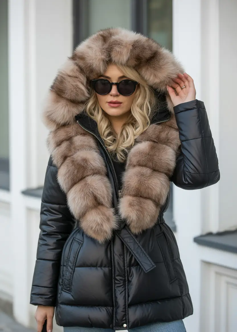 This piece checks several winter wardrobe boxes: structure, insulation, and a little drama. The longer puffer coat gives warmth while staying sleek. The fur trim is belted for additional definition around the waist. Pair it with dark skinny jeans, snow boots, and oversized sunnies to fully lean into that après-ski chic vibe.