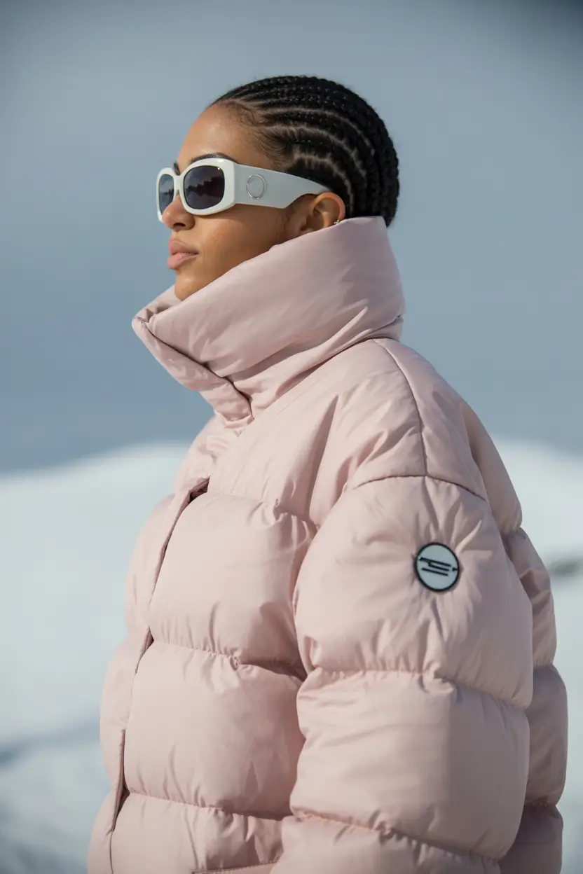 I would advise the cocoon style to be paired with some oversized sunglasses, or to emphasize the more Prada style and add some winter goggle, and sleek goggles. Or if it is Prada style, a light lavender base layer to drizzle and the outfit to soften the vibe would also look nice.