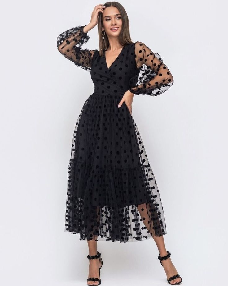 Opt for a black dress that incorporates sheer panels or overlays. This gives a hint of allure without being overly revealing. The sheer elements can be in the form of a top layer, sleeves, or even inserts in the dress. Finish the look with a bold accessory to tie everything together.