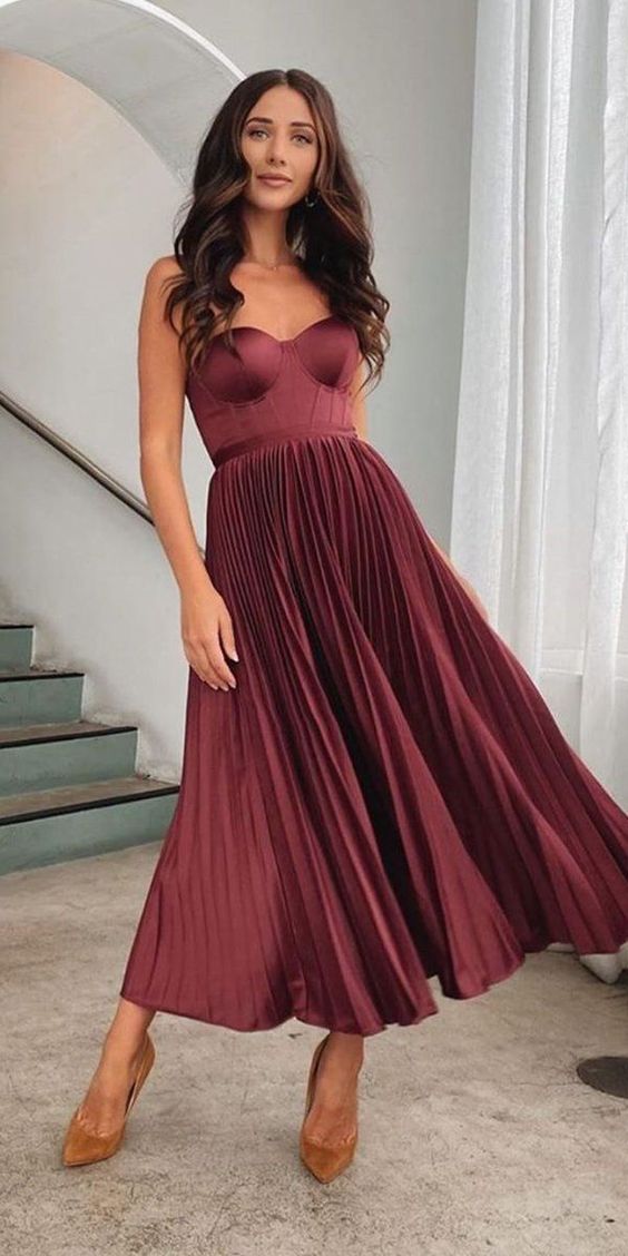 Long dresses are always in vogue during the fall. Choose earthy tones and rich fabrics to truly stand out.