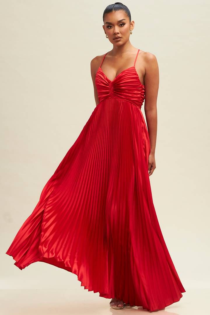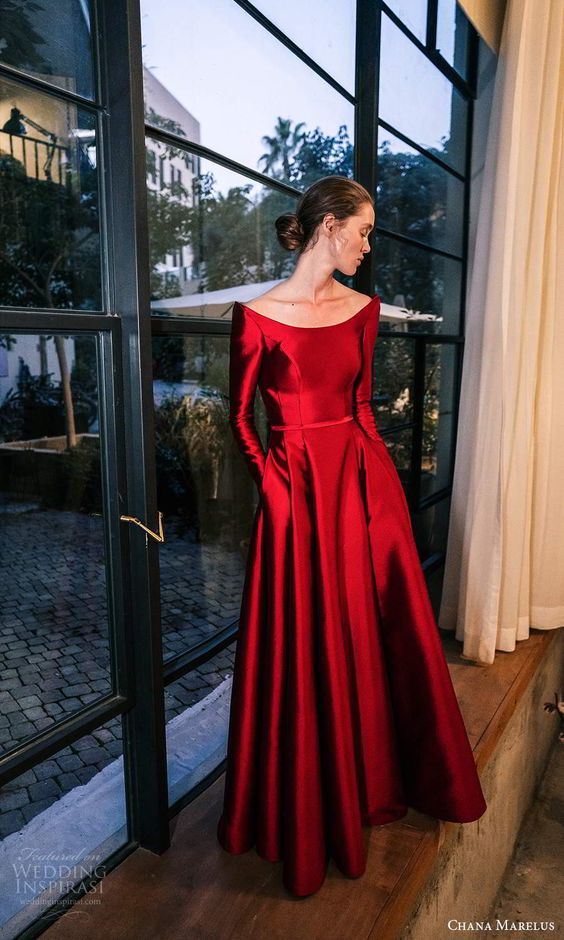Long dresses exude an undeniable elegance. A long, flowy red dress, perhaps made of silky materials, can make you feel like you’re floating on air. Perfect for a black tie or formal wedding!